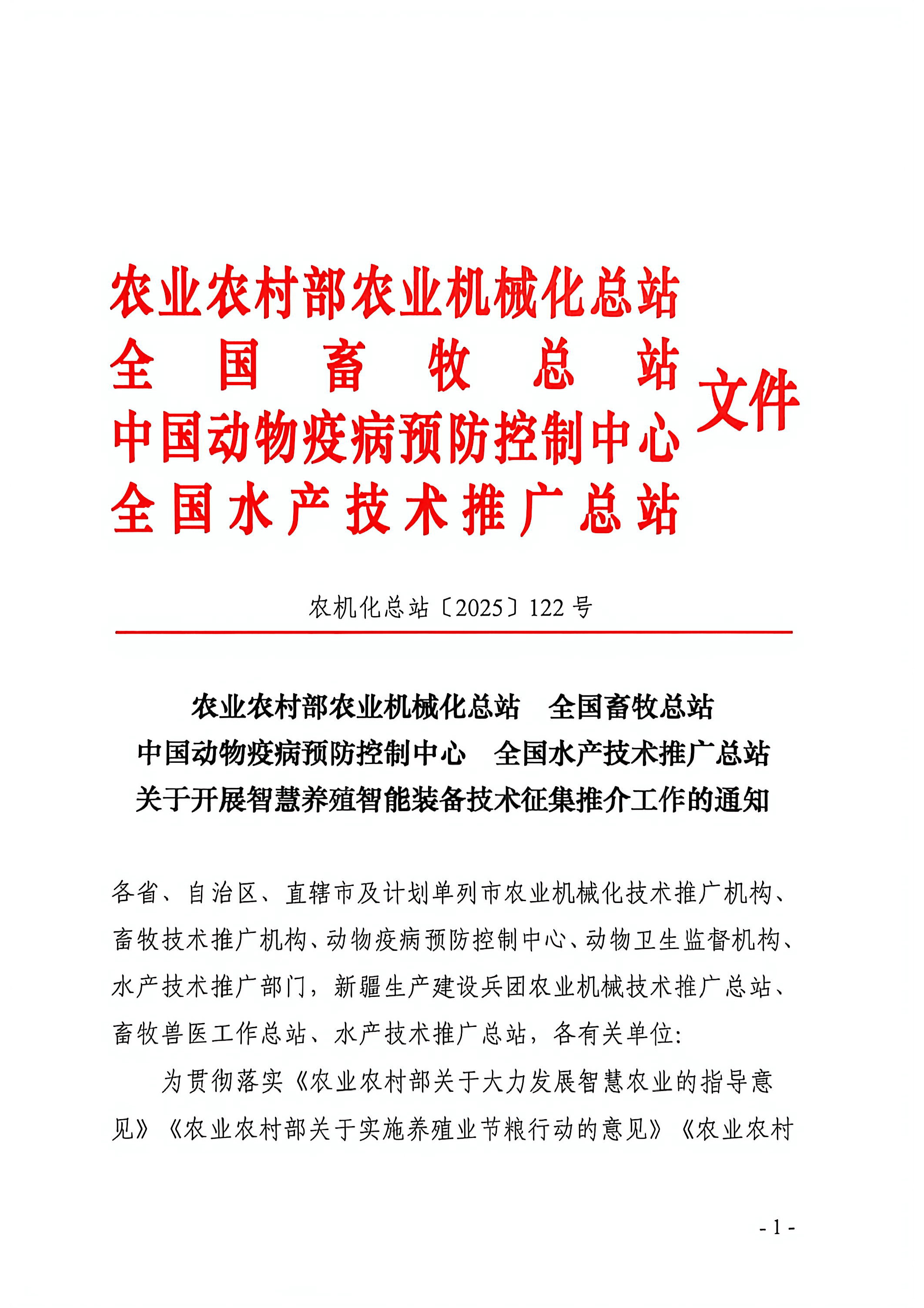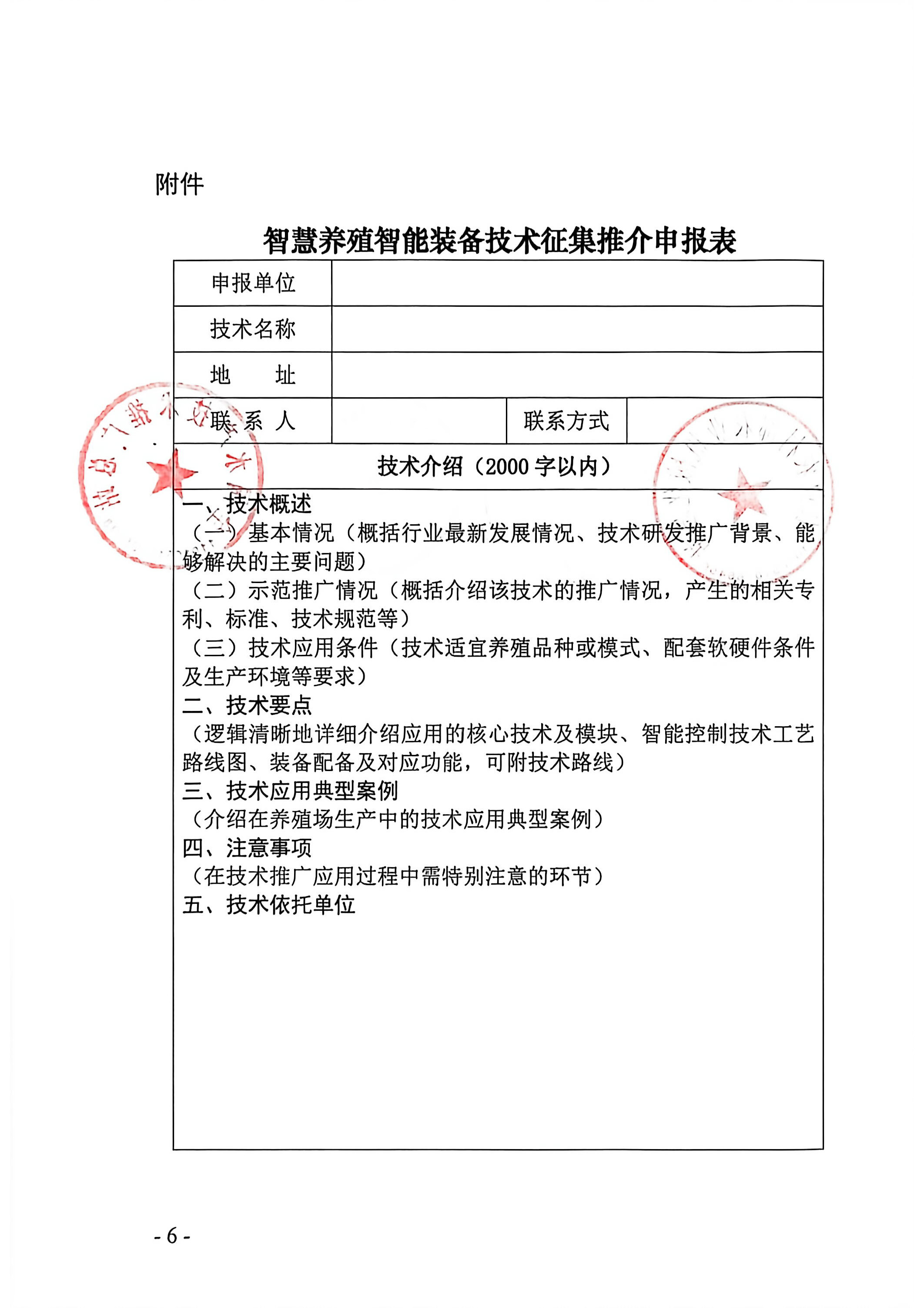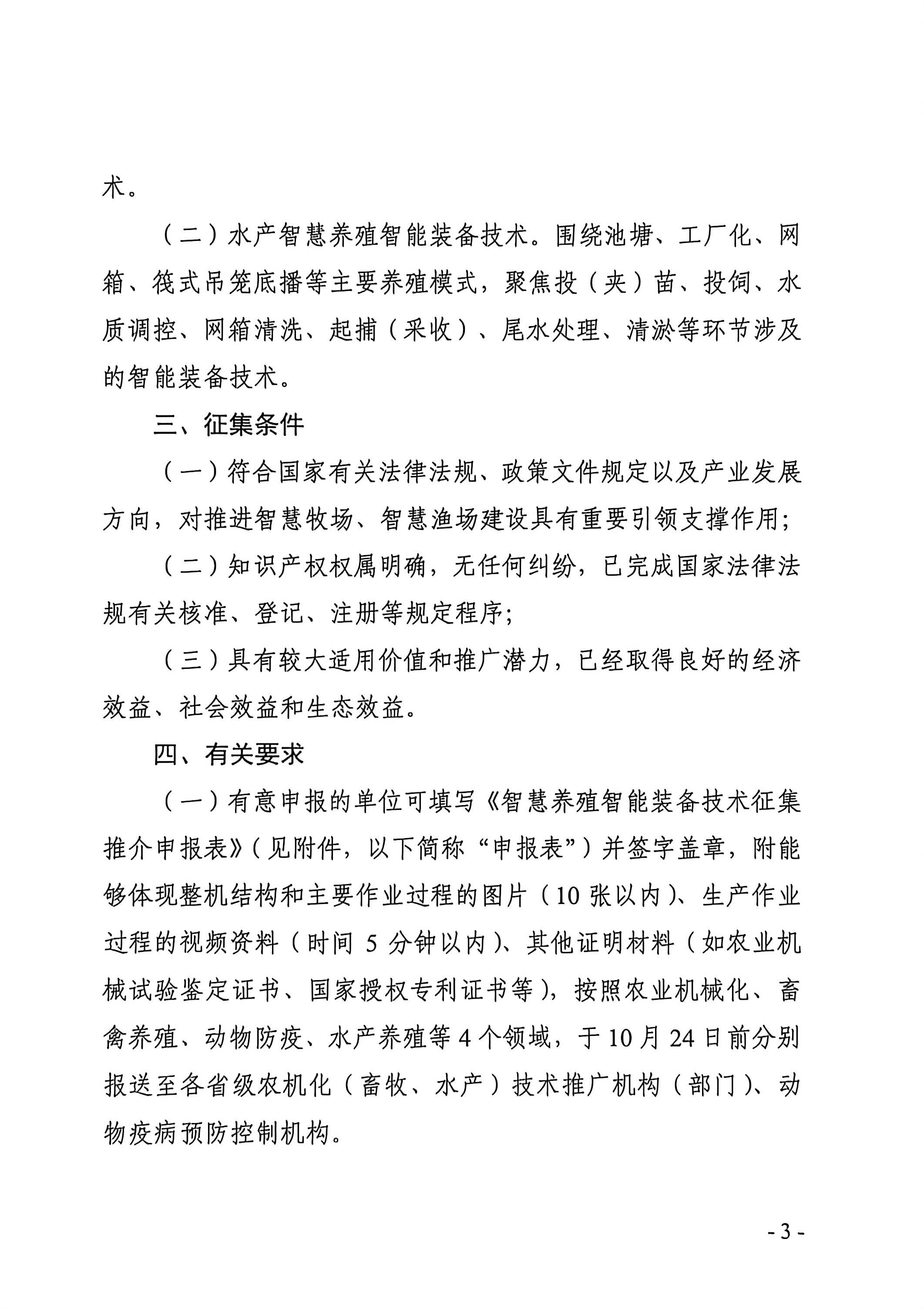 关于开展智慧养殖智能装备技术征集推介工作的通知