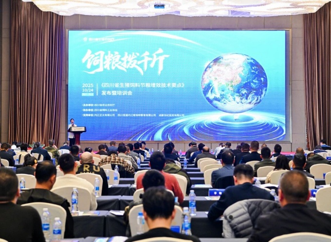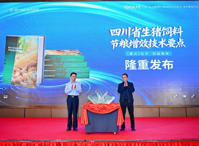 10月24日,由四川省农业农村厅主办、四川省饲料工业协会协办的全省饲料监管培训暨《四川省生猪饲料节粮增效技术要点》(以下简称《技术要点》)发布会,以“现场观摩+专题培训”的形式在内江举行。省农业农村厅党组成员、副厅长向贵瑜参与现场观摩,内江市政府党组成员蒋伟陪同。四川农业大学教授、四川省饲料工业协会会长陈代文,四川省农业农村厅饲料兽药处处长黄洪春全程参与,并为《技术要点》揭幕。