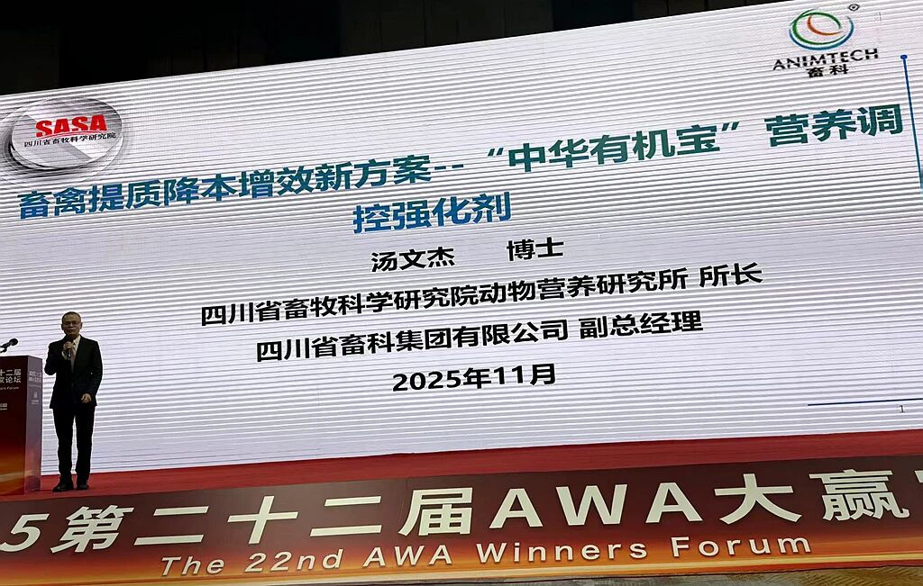 2025年11月16日至17日,第22届AWA大赢家论坛暨2025全球农商管理大会在北京隆重召开。全球农牧行业大咖云集,高校、科研院所专家悉数莅临。中国人民大学校长刘伟教授、国家三农专家温铁军、中国人大教授/国家乡村振兴重大课题组组长兼首席专家张利庠、东方希望刘永行董事长、大北农董事长邵根伙、禾丰董事长金卫东等作报告。AWA西南会长、四川省畜科集团董事长邝声耀研究员,畜科集团总经理李书伟研究员,畜科集团副总经理、四川省畜科院营养健康研究所所长汤文杰博士等应邀出席盛会。