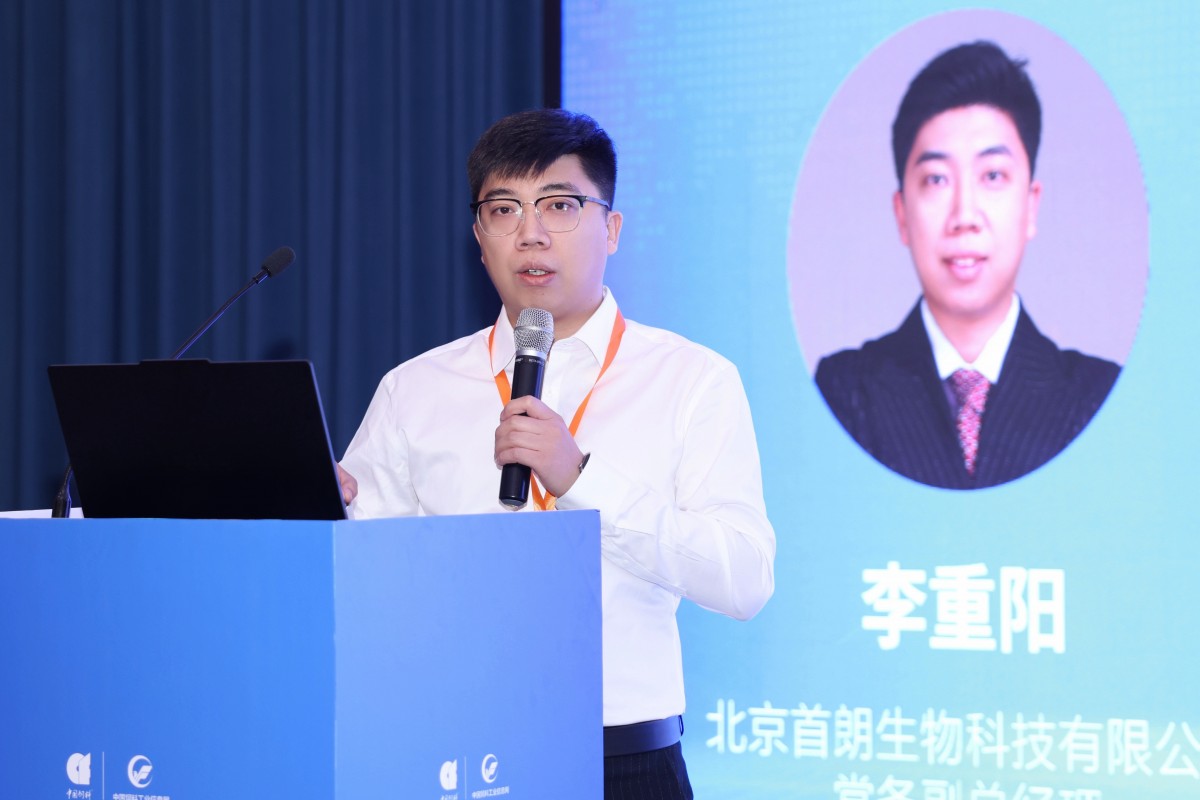 北京首朗生物科技有限公司常务副总经理李重阳作题为《一碳气体为原料合成的微生物菌体蛋白作为饲料原料使用效果介绍》的报告。