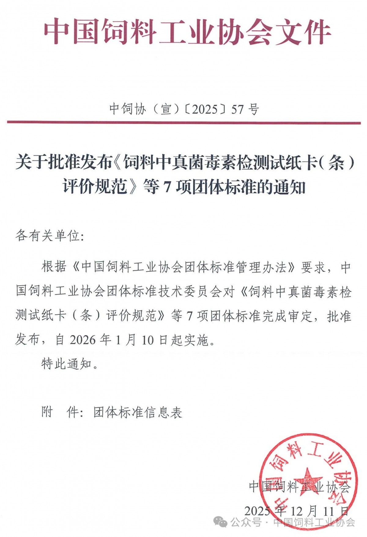 团体标准 | 关于批准发布《饲料中真菌毒素检测试纸卡(条)评价规范》等7项团体标准的通知