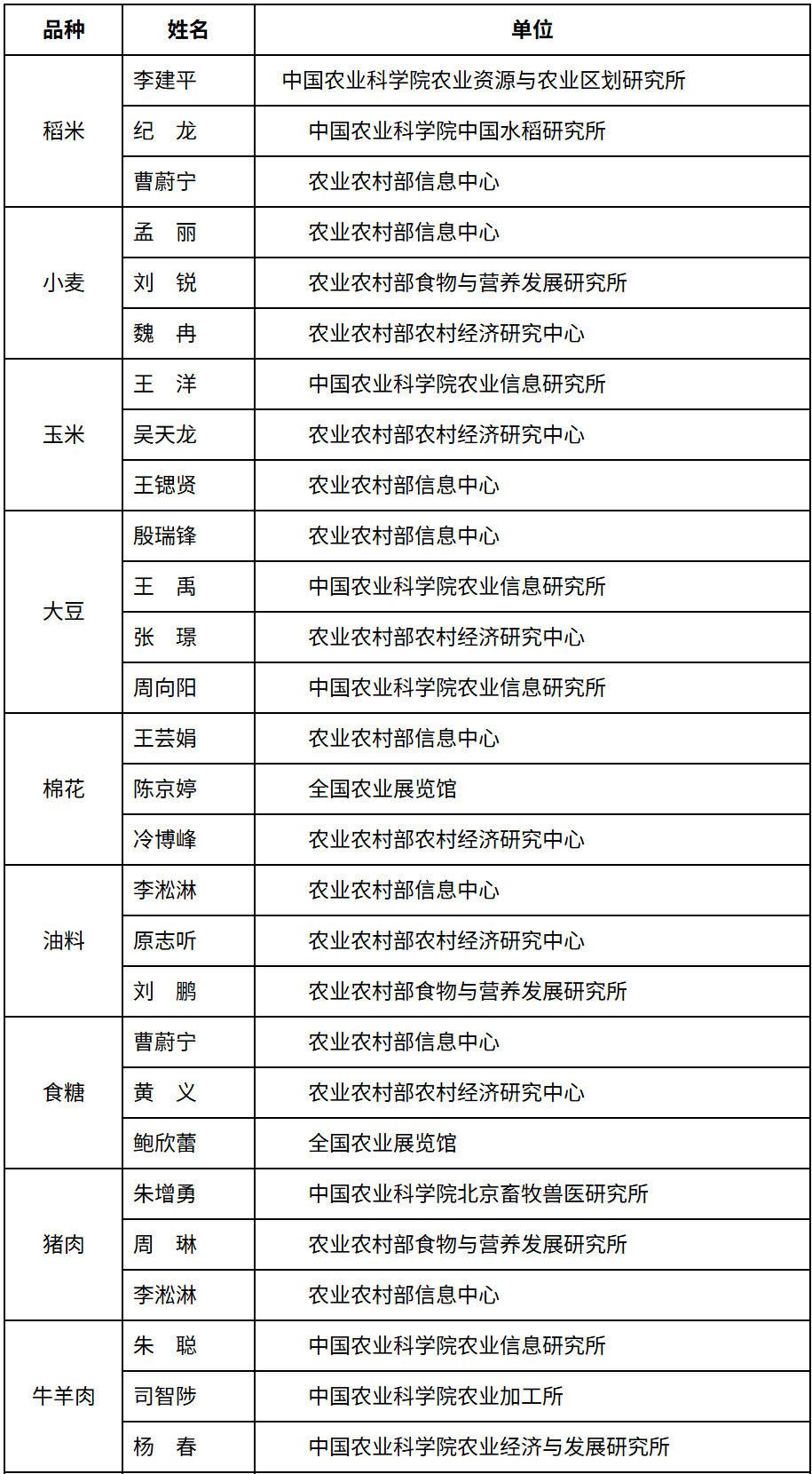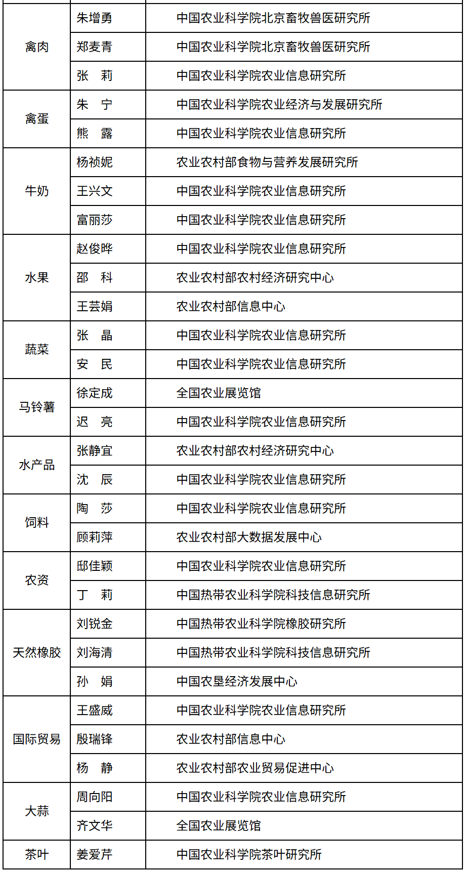 农产品市场分析预警团队首席分析师人员名单(2026—2028)