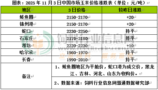 国内主产区新玉米收获接近尾声,基层售粮心态有所变化,潮粮被动出售压力减轻,市场流通粮源减少,部分贸易主体显现建库意愿,市场价格出现小幅反弹态势。产地售粮心态转变,北方港口晨间集港量小幅下滑,新粮集港成本相对稳定,因南港需求未明显增加,运输成本上涨北港贸易利润缩小。南方港口内贸玉米到货趋增,谷物总库存依然较高,终端提货速度略有回升,整体新成交仍较少,贸易商报价趋弱。国内玉米现货价格基本稳定,局部小幅震荡。东北产区受气温下降影响,储存条件改善,种植户惜售情绪升温,市场可流通粮源阶段性减少,部分贸易商看好后期干粮市场,烘干塔开塔数量有所增多,贸易商收潮粮烘干待价涨,中储粮收购新粮对市场信心也有所提振,部分用粮企业在计划建立2-3个月库存。考虑到今年春节同比晚了近20天,售粮节奏预计也将相应推迟,加上东北粮增产明显,待售粮源或同比偏多。华北黄淮产区玉米收割期基本结束,天气好转后基层销售进度放缓,贸易商建库积极性不高,随受随走,物流运输成本上涨东北玉米到货量减少,深加工企业到货量维持低位,部分企业价格继续区间调整。