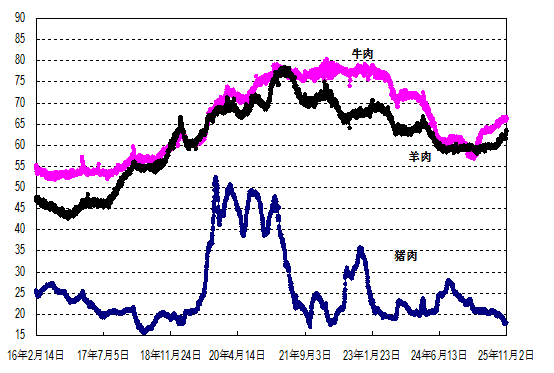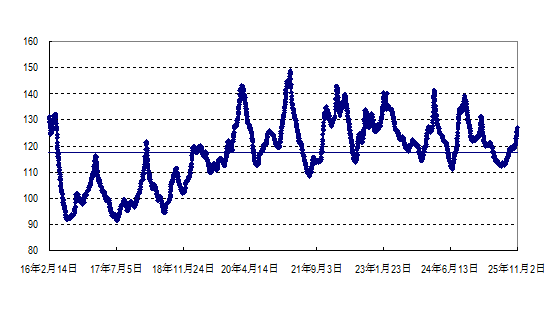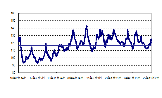 据农业农村部监测,2025年第44周(2025年10月27日—11月2日,下同)“农产品批发价格200指数”为124.45(以2015年为100),比前一周升2.96个点,同比低1.88个点;“‘菜篮子’产品批发价格指数”为126.35(以2015年为100),比前一周升3.48个点,同比低1.99个点。