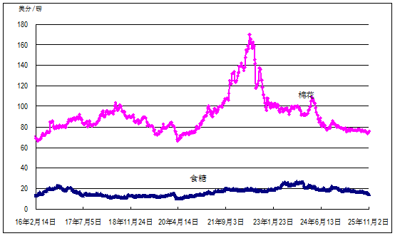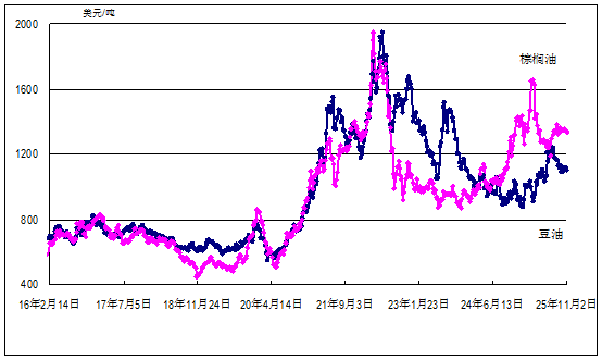 2.原糖、豆油和棕榈油价格环比下跌。国际糖料理事会原糖周均价每磅14.26美分(每吨314美元),环比跌5%,同比低32%;美国芝加哥商品交易所豆油最近期货合约收盘周均价每吨1100美元,环比跌1%,同比高13%;马来西亚棕榈油荷兰鹿特丹港到岸周均价每吨1332美元,环比跌1%,同比高2%。