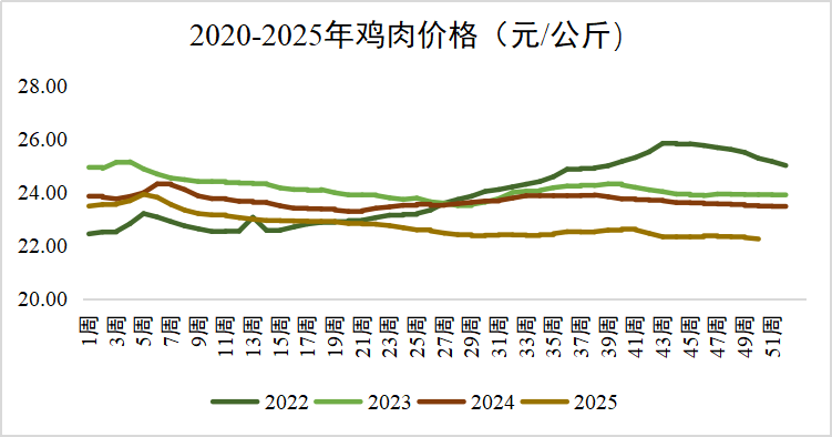 鸡肉价格小幅下跌:全国鸡肉平均价格22.25元/公斤,比前一周下跌0.2%,同比下跌5.2%。商品代蛋雏鸡平均价格3.49元/只,与前一周持平,同比下跌13.2%。商品代肉雏鸡平均价格3.41元/只,与前一周持平,同比下跌6.8%。