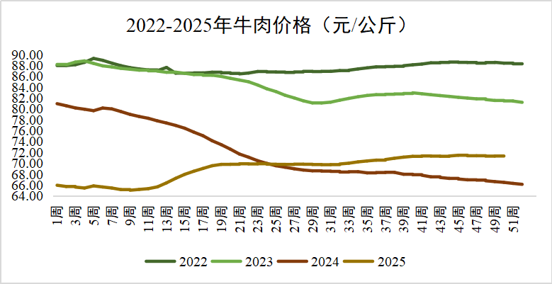 牛肉价格平稳运行:全国牛肉平均价格71.33元/公斤,与前一周持平,同比上涨7.3%。河北、内蒙古等10个主产省份牛肉价格65.14元/公斤,比前一周下跌0.1%。主产省份活牛价格26.51元/公斤,比前一周下跌0.1%,同比上涨15.0%。