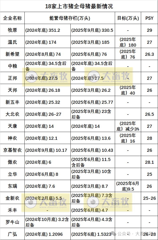 最近,部分上市猪企更新了最新母猪存栏情况,大畜牧小编收集汇总如下: