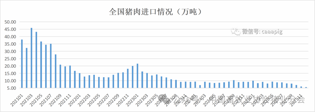 5、2025年1-12月累计进口猪肉97.58万吨,同比下降9.0%。