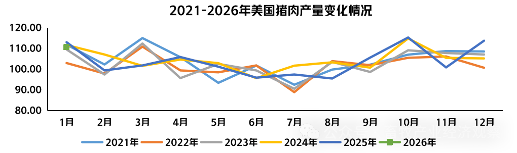 产量方面,1月份美国猪肉产量110.7万吨,同比增11.4%。