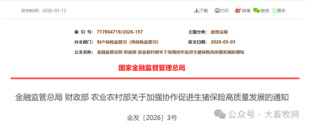 金融监管总局、财政部、农业农村部发布关于加强协作促进生猪保险高质量发展的通知,其中提到建立调整机制,促进生猪保险提质增效。