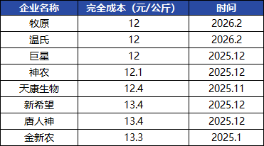 随猪价持续跌破成本线,养殖行业的亏损幅度正在急剧扩大。截至3月中旬,自繁自养模式的头均亏损已扩大至270元,且节后这一状态连续维持5周之多。更值得注意的是本轮亏损已蔓延至头部企业,作为行业成本控制的标杆,牧原股份2026年1-2月的平均养殖成本约为12元/公斤,而同期商品猪销售均价分别为12.57元/公斤和11.59元/公斤,2月份已出现经营性微亏。进入3月,随销售均价进一步滑落至10.0元/公斤附近,头部企业的月度亏损额度仍将继续扩大。