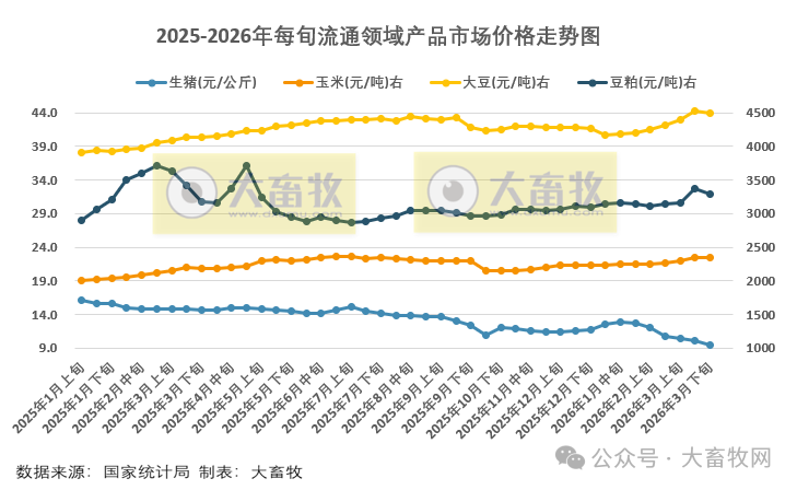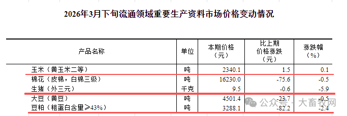 大畜牧综合,国家统计局官网2026年4月4日消息,据对全国流通领域9大类50种重要生产资料市场价格的监测显示,2026年3月下旬与3月中旬相比,31种产品价格上涨,16种下降,3种持平。