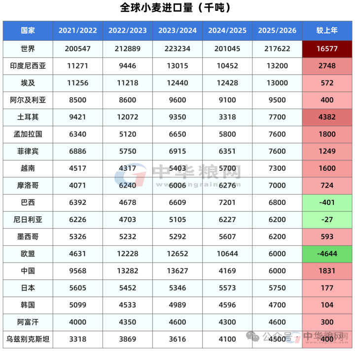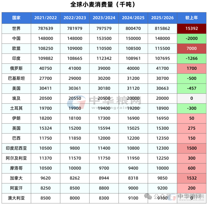 其他维持产量不变的国家包括,中国小麦产量1.4007亿吨,加拿大3996万吨,印度产量1.1795亿吨。