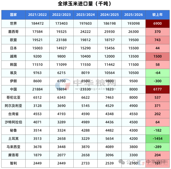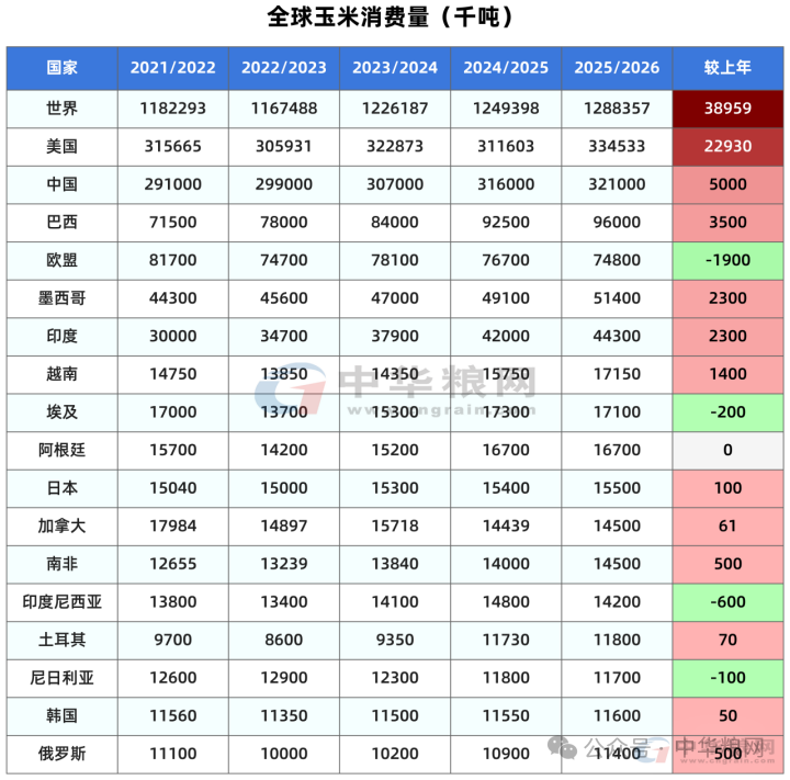 其他产量维持不变的国家包括,墨西哥产量2570万吨不变,中国玉米产量3.0124亿吨不变,加拿大1487万吨。