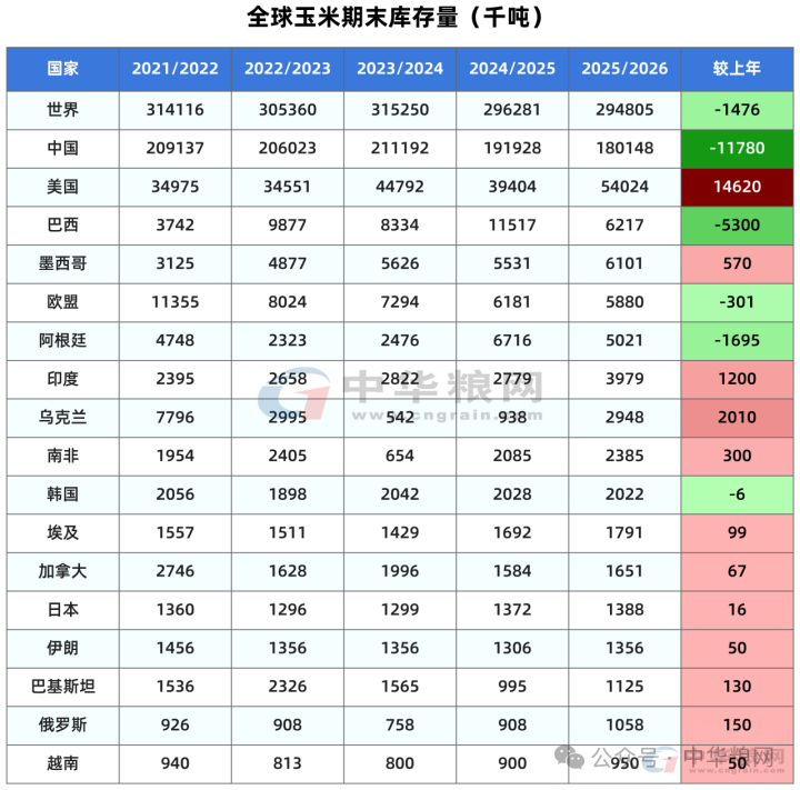 全球玉米:产量和库存上调,库存用量比提高