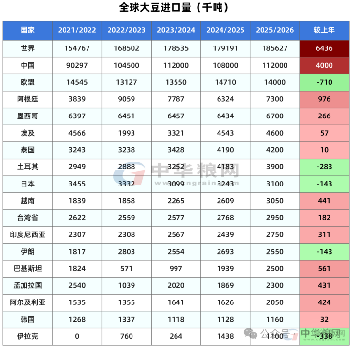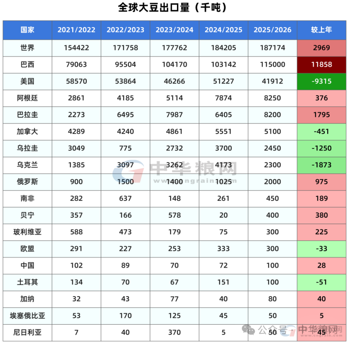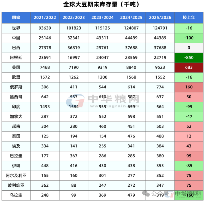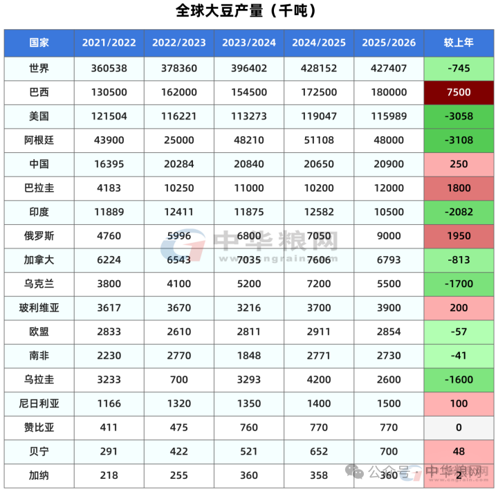 本月将2025/26年度巴拉圭大豆产量调高50万吨,达到1200万吨;阿根廷大豆产量维持在4800万吨不变。