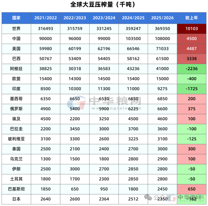 全球产量和压榨上调,库存调低