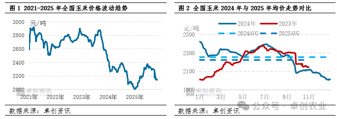 【导语】2025年国内玉米价格整体表现为以7月为分界点先涨后跌的倒“U”型走势,价格上涨的根本原因是供应收紧、需求提升。受政策以及新季玉米上市影响,7月份以后市场供应增加,而需求支撑力度有限,市场价格承压走低。