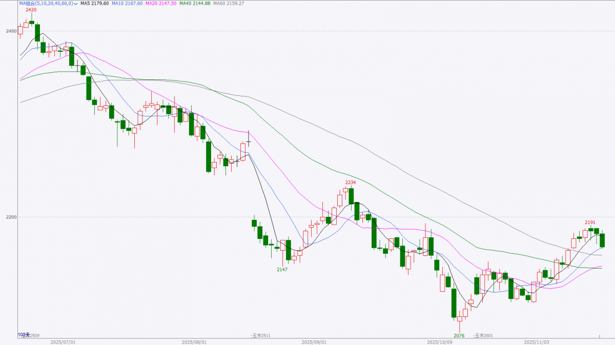 期货方面,周二玉米C2601合约高开低走,收2168元/吨(跌0.5%),持仓增9093手至94.3万手,资金净流入929万元至28.63亿。多空主力均增仓(多头+9655手,空头+12566手),说明盘面博弈增加,不过空头略占优势。