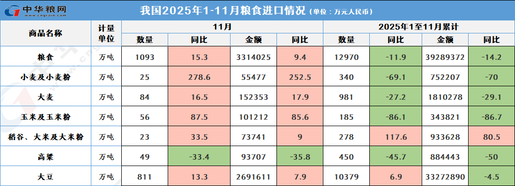 中国11月小麦及小麦粉进口量为25万吨,同比增加278.6%;1-11月小麦及小麦粉进口量为340万吨,同比下滑70%。