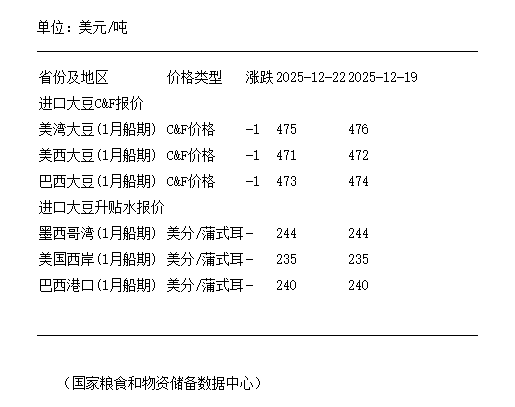 12月22日进口大豆到国内港口C&F及升贴水报价