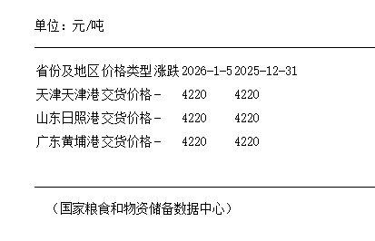 1月5日进口大豆港口分销价持平