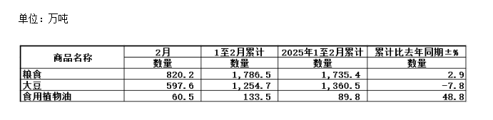海关统计:2026年头两个月中国大豆进口量同比降低7.8%