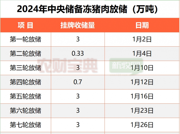 1月25日,华储网发布关于2024年1月26日中央储备冻猪肉轮换出库竞价交易和出库提货有关事项的通知。通知指出,根据前期轮换出入库情况,按照等量轮换的要求,本次轮换出库竞价交易挂牌2万吨,以实际挂牌为准。交易时间为2024年1月26日上午8:30~11:30。